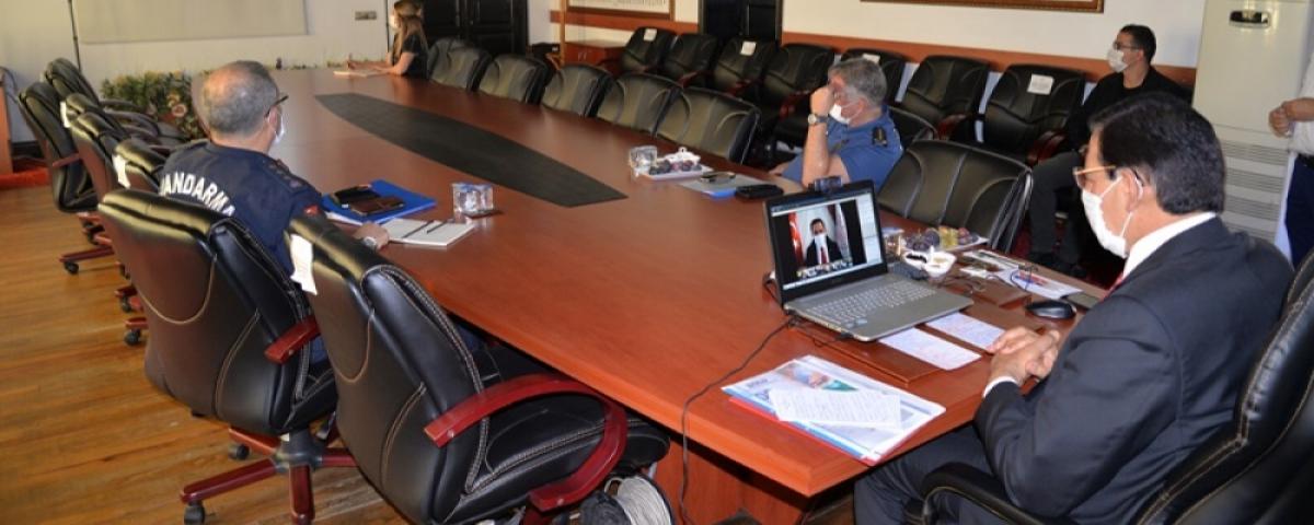Bolu Valisi Ahmet Ümit'in kaymakamlar ile video konferans sistemi üzerinden gerçekleştirdiği toplantıda, İl Emniyet Müdürü Armağan Adnan Erdoğan ve İl Jandarma Komutan Vekili Jandarma Albay Mustafa Güder hazır bulundu.