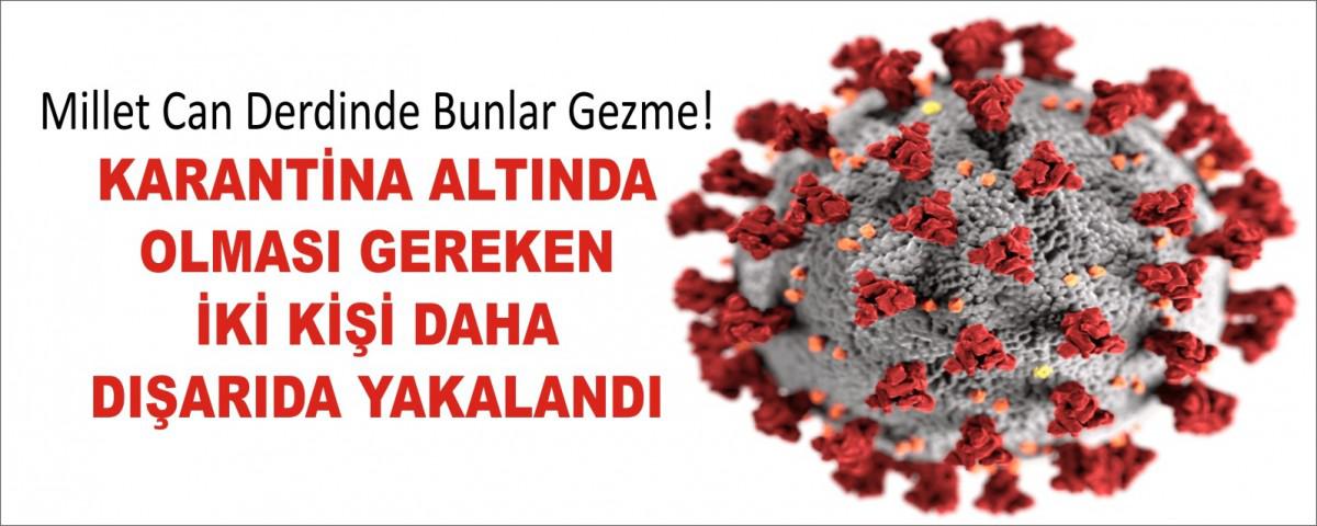 Korona virüs tedbirleri kapsamında karantinada olması gereken iki kişi Bolu Emniyet Müdürlüğüne bağlı ekiplerin yapmış olduğu Genel Bilgi toplama (GBT) sorgusunda yakalandı.