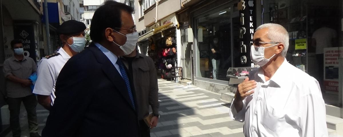 Bolu Valisi Ahmet Ümit, İzzet Baysal Ortaokulunda koronavirüs tedbirleriyle ilgili denetlemelerde bulundu. Vali Ümit, okuldaki denetlemelerin ardından Cumhuriyet Caddesi'nde işletmeleri denetledi.