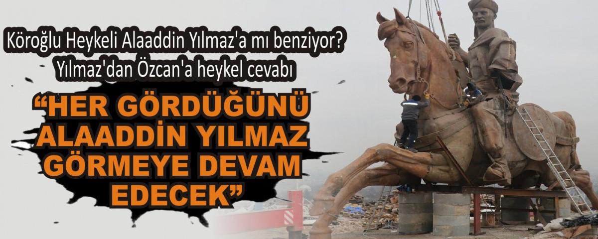 Başkan Özcan'ın Köroğlu heykelinin Alaaddin Yılmaz'a benziyor şeklindeki açıklamasına cevap veren Yılmaz, “Diyor ki ‘Alaaddin Yımaz'a benziyor' Bu kadar basit şeyler. Böyle çok ciddi şeyler yok edilmemeli. Köroğlu bana benziyorsa bundan gurur duyarım ama heykel benzemiyor. O her gördüğünü Alaadiin Yılmaz görmeye devam edecek. Yolları gördüğünde bana benzeyecek, nere baksa beni görecek. Bolu'nun her yerinde ben varım” ifadelerini kullandı.