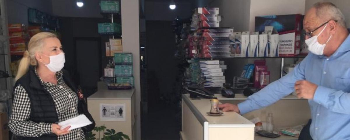 Cumhuriyet Halk Partisi Kadın Kolları esnaf ziyaretlerine devam ediyor. İsmet Paşa Caddesi'nde bulunan iş yerlerini ziyaret ederek maske dağıtan CHP Kadın Kolları üyeleri, esnafın talep ve şikâyetlerini dinledi.