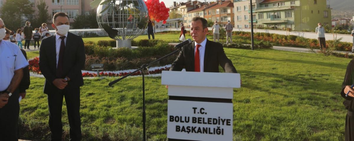 Özcan, daha sonra Bolu'ya kazandırılan parka da değinerek, “Burası Bolu Belediye başkanlığımızın ana girişi haline geldi. Ben göreve geldiğimde belediye binasını teslim almıştım ama bina tamamlanmış bir bina değildi. Geçici kabulü dahi yapılmamıştı. Özellikle alt katlarında çok büyük bir taban suyu problemi vardı. Aylarca bu taban suyu problemini çözebilmek için uğraş verdik. Buranın eski halini hatırlayanlar var mı bilmem, şurada tuhaf bir kafe vardı sonradan büyütülmüş. Burası zaten mezbelelik haldeydi. Sağ olsunlar arkadaşlarımızın gayretleri ile hem belediyemiz güzel bir girişe kavuştu hem de aynı zamanda güzel ve bakımlı bir parka kavuştuk.” diye konuştu.