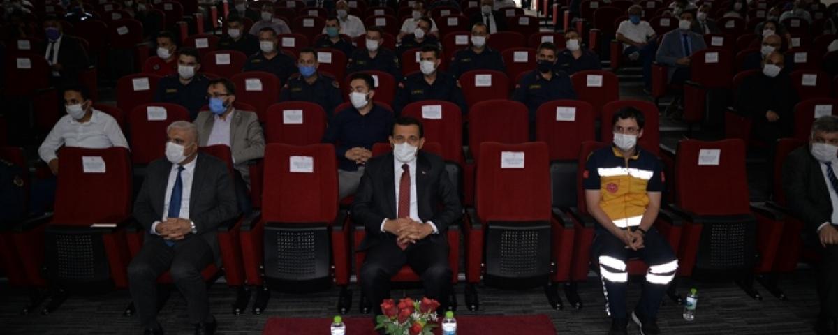Koronavirüsle Mücadelede görev alan denetim ekipleri ile Güvenlik güçlerinin birlikte hareket etmesi gerektiğini ifade eden Vali Ümit, “İlimiz genelinde koronavirüsle mücadelede görevlendirilen denetim ekiplerimiz ile güvenlik güçlerimiz birbirleriyle entegre bir şekilde hareket ederek nikâh törenleri ve iş yerleri başta olmak üzere hayatın olduğu her alanda denetimlerini gerçekleştirecekler, yaptıkları işlemlerle ilgili tutanaklarını tutacaklardır. Denetimlerin sonuçlarını da en kısa sürede 112 Acil Çağrı Merkezine bildireceklerdir. Görevinizin bilincinde olmalısınız, bunun manevi mesuliyetini yüreğinizde hissetmelisiniz” dedi.