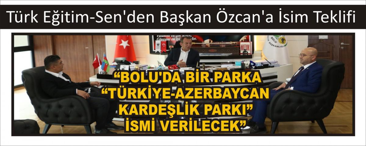 Cuma günü öğleden önce gerçekleşen ziyarette Türk Eğitim-Sen Bolu Şube Başkanı Erhan Bayram, Başkan Özcan'a teşekkürlerini sunarak, “Hisar Tepesi'nde göndere çekmiş olduğunuz Azerbaycan bayrağı bizi ziyadesiyle mutlu etti. Bayrak uygulaması için sizlere şahsım, sendikam adına şükranlarımızı iletmek için buradayız. Bir Bolulu olarak şahsım ve yönetim kurulum adına sizlere çok teşekkür ediyorum. Azerbaycan bizim kardeş devletimiz. Dolayısıyla bu süreç, aynı Kıbrıs davası gibi, iktidarıyla, muhalefetiyle, ayrım yapmaksızın milli bir dava haline gelmiştir.” dedi. Bayram ayrıca, “Bunun yanında, eğer kabul buyurursanız Bolu'da bir parka ‘Türkiye-Azerbaycan Kardeşlik Parkı' adı verilmesini talep ediyoruz.” ifadelerini kullandı.