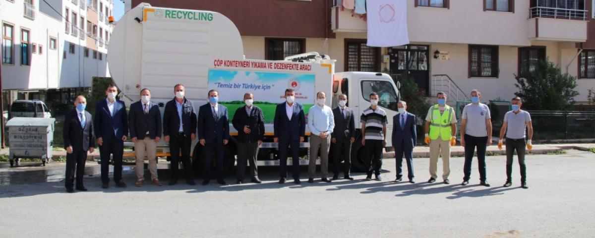 İlçesi için çalışmalarına gece-gündüz devam eden Gerede Belediye Başkanı Mustafa Allar, Belediye bünyesine çöp konteyneri yıkama ve dezenfekte aracı kazandırdı.