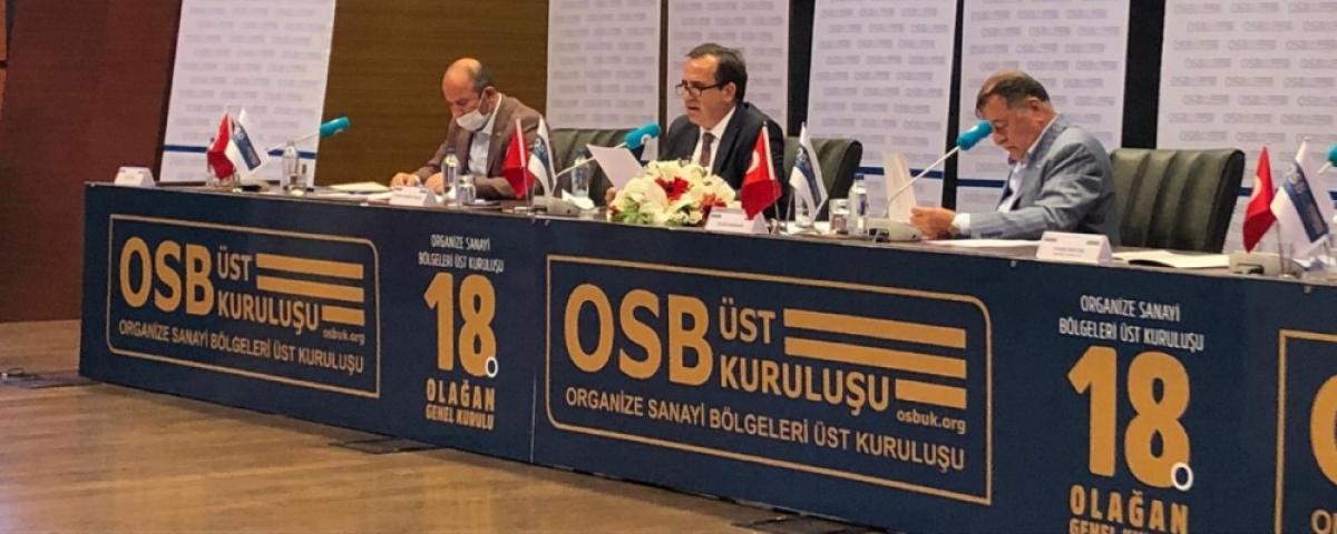 Türkiye genelinde 2 milyonu aşkın kişinin istihdam edildiği ve sayısı 344'e ulaşan organize sanayi bölgelerini temsil eden Organize Sanayi Bölgeleri Üst Kuruluşu (OSBÜK)'nun 18. Mali Genel Kurulu, Sanayi ve Teknoloji Bakan Yardımcısı Hasan Büyükdede'nin katılımıyla TOBB Konferans Salonu'nda yapıldı.