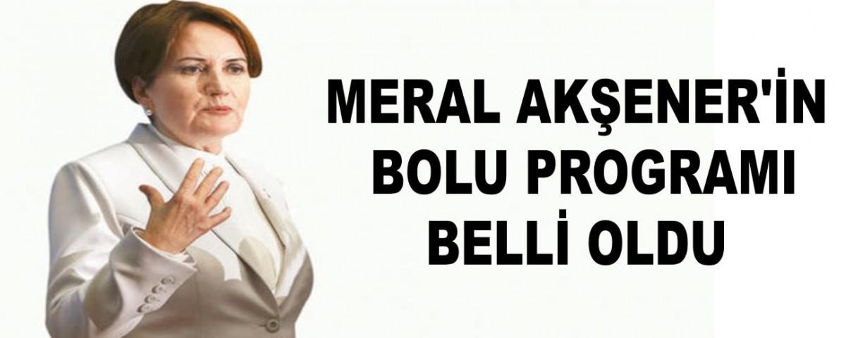 İYİ Parti Bolu İl Başkanlığından verilen bilgiye göre, Perşembe günü saat 12.00'de Dörtdivan ilçesine gelecek olan Akşener, esnafı gezip ziyaret ettikten sonra Bolu'ya gelecek. Akşener, saat 13.30'da Bolu'da esnaf ziyaretleri yapıp vatandaşların dertlerini ve taleplerini dinleyecek. Ardından Bolu Belediye Başkanlığına ziyarette bulunacak daha sonra Mudurnu'ya gidecek ve orada da esnafla bir araya gelecek. Akşener son olarak 18.30'da İYİ Parti Bolu İl Başkanlığı teşkilatı ile bir araya gelip aynı gün Bolu'dan ayrılarak Ankara'ya hareket edecek.