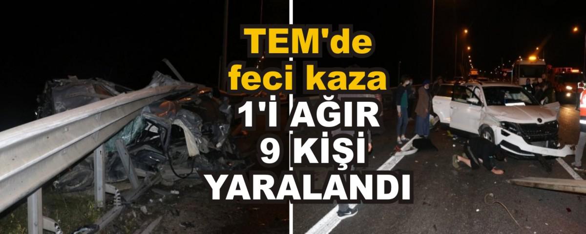 Bolu'da, TEM Otoyolu'nda freni patlayan kamyonun sebep olduğu 7 araçlı zincirleme kazada 1'i ağır 9 kişi yaralandı.