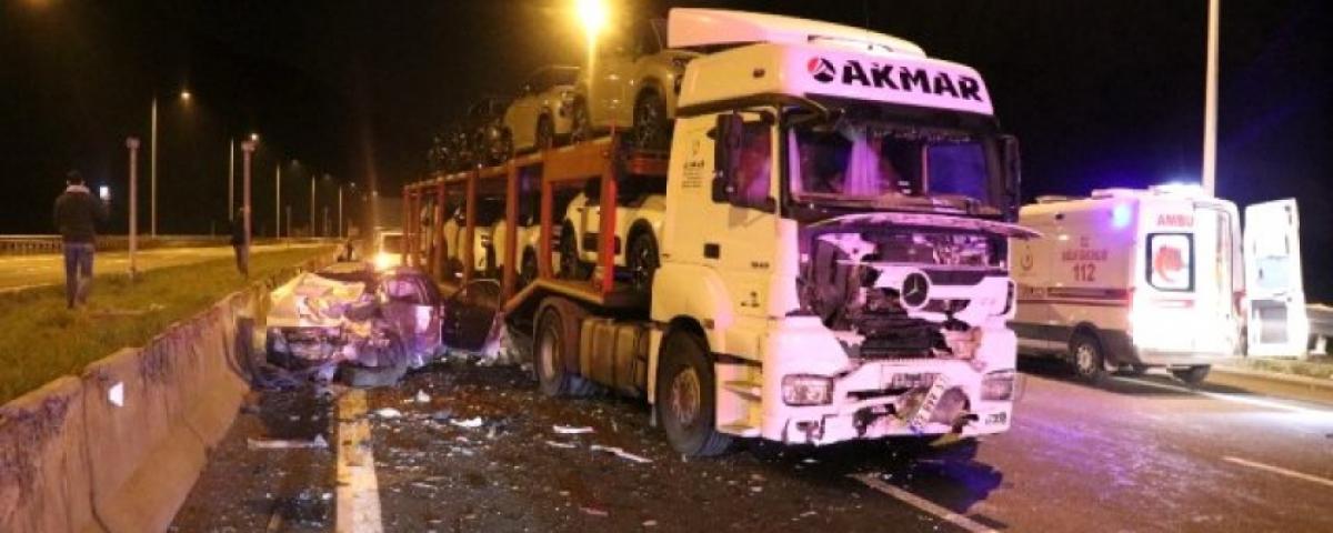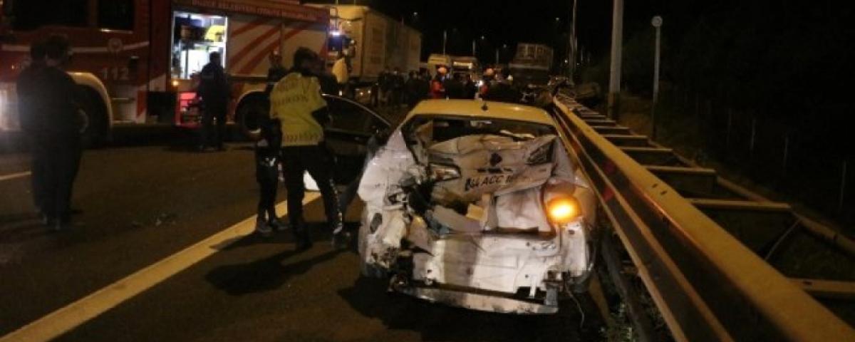 Bolu'da, TEM Otoyolu'nda freni patlayan kamyonun sebep olduğu 7 araçlı zincirleme kazada 1'i ağır 9 kişi yaralandı. Kazada, bariyerlere saplanarak hurdaya dönen otomobildeki 4 kişilik ailenin sağ kurtulması vatandaşları hayretler içinde bıraktı.