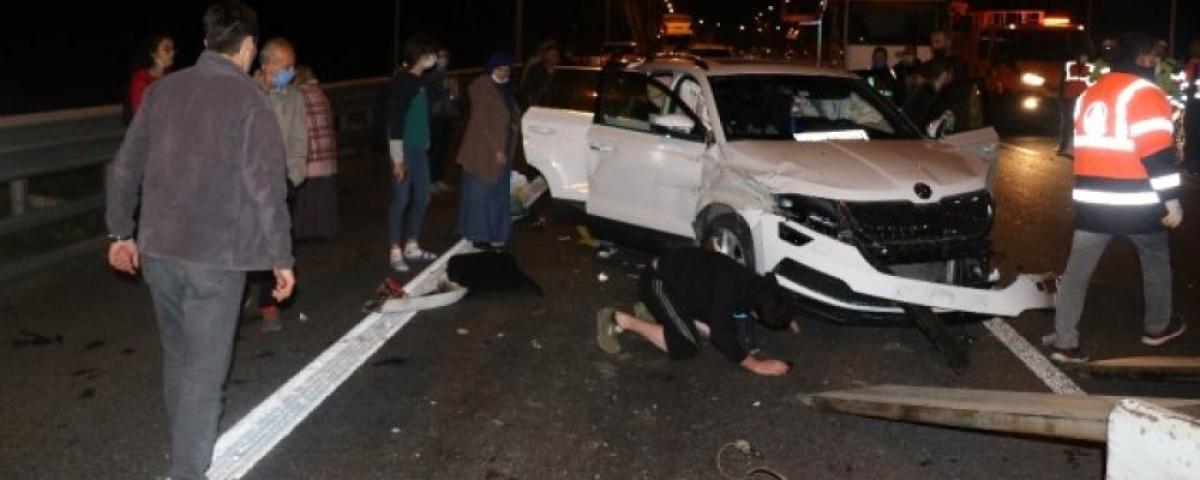 BARİYERLERE SAPLANAN OTOMOBİLDEN SAĞ ÇIKTILAR