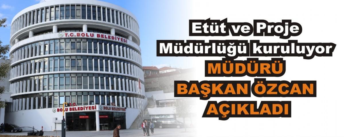 Bolu Belediyesi Fen İşleri Müdürlüğü, Destek Hizmetleri ve Park ve Bahçeler Müdürlüğü arasında yaşanan koordinasyon sıkıntılarına çözüm üretmek amacıyla Etüt ve Proje Müdürlüğü kurulmasına Belediye Meclisi tarafından karar verildi. Bolu Belediye Başkanı Tanju Özcan kurulmak istenen Etüt ve Proje Müdürlüğü'ne ise vekaleten Şehir Plancısı Mehmet Ali Çelebi'nin getirildiğini açıkladı.