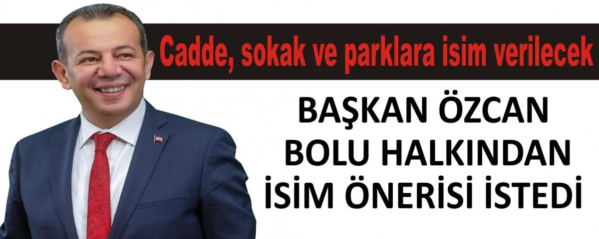 Bolu'da isim yerine numara verilen veya hiç ismi olmayan sokak, cadde ve parklara isim verilecek. Belediye Başkanı Tanju Özcan, Bolu'ya mal olmuş insanların isimlerini vermek istedikleri söyledi. Başkan Özcan, Bolu halkından isim önerisi talebinde bulundu. Bolulu vatandaşlardan, STK'lardan, meslek odalarından ve mahalle muhtarlarından isim önerisi isteyen Bolu Belediye Başkanı Tanju Özcan, en kısa sürede isimleri olmayan sokak, cadde ve parklara isimlerinin verileceğini söyledi. Başkan Özcan, “İsmi hiç olmayan veya numara olan sokak ve caddelerimize isim verilmesi lazım. Yeni yapılan bulvarlarımız var. Bunlara isim verilmesi veya olan bazı isimlerin değiştirilmesi lazım. Sivil Toplum Örgütlerimizin, Meslek odalarımızın ve muhtarlarımızın önerisi konusunda isim değişikliği yapılması konusunda bir çalışma yapmak istiyoruz. Plan Bütçe ve İmar Komisyonu'na havale ettik. En yoğun çalışan komisyon İmar Komisyonu'muz. Ama bu dönem 5 gün değil 20 gün çalışacaklar. Boşlukları olacak. En verimli ay bu ay olacak” diye konuştu.