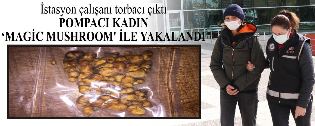 İl Emniyet Müdürlüğü Narkotik Suçlarla Mücadele Şube Müdürlüğü ekipleri, kent merkezinde bulunan bir akaryakıt istasyonunda pompacı olarak çalışan C.A. (32) isimli kadının uyuşturucu madde imal ettiği ihbarı üzerine çalışma başlattı. Ekipler, takibe aldıkları genç kadına evine gittiği sırada operasyon düzenledi. C.A.'nın üzerinde yapılan aramada uyuşturucu etkisi bulunan 88 gram ‘sihirli mantar' ele geçirdi. Soruşturmayı genişleten Narkotik ekipleri C.A.'nın evinde de arama yaptı. Evde yapılan aramalarda ise, 116 gram esrar yakalandı. İfadeleri alınmak üzere emniyet müdürlüğüne götürülen C.A., işlemlerinin ardından adliyeye sevk edildi.