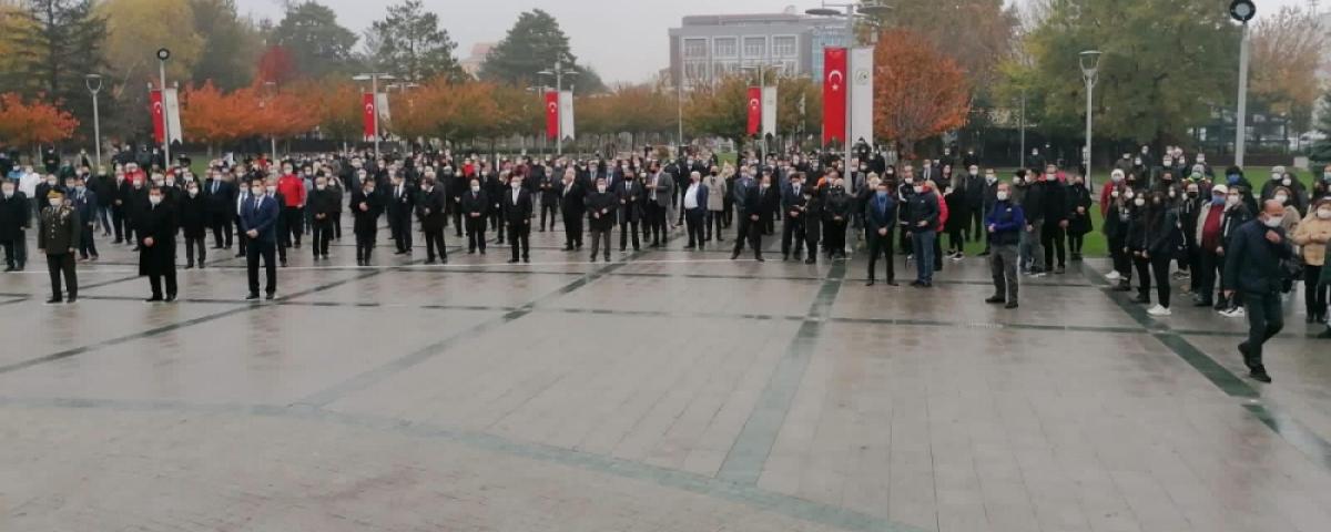 Anıt Park'ta bulunan Atatürk Anıtı'na çelenk sunumuyla başlayan tören, saygı duruşu ve İstiklal Marşı'nın okunmasıyla devam etti. Saatler 09.05'i gösterdiğinde yaya olan vatandaşlarla birlikte trafikte olan sürücüler de araçlarından inerek Ata'ya saygı duruşunda bulundu. Evlerinde olan vatandaşlar ise pencerelerinin önünden ve balkonlarından saygı duruşuna katıldı.