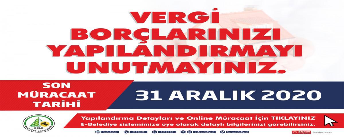 Bolu Belediyesi, 17 Kasım 2020 tarihli Resmi Gazete de yayımlanarak yürürlüğe giren ‘Bazı Alacakların Yeniden Yapılandırılmasına İlişkin 7256 sayılı Kanun' çerçevesinde emlak, çevre temizlik, ilan ve reklam, eğlence vergi borçlarının yeniden yapılandırılacağını duyurdu. Bolu Belediye Başkanlığı'ndan söz konusu Kanun ile ilgili yapılan açıklamada şu bilgilere yer verildi: