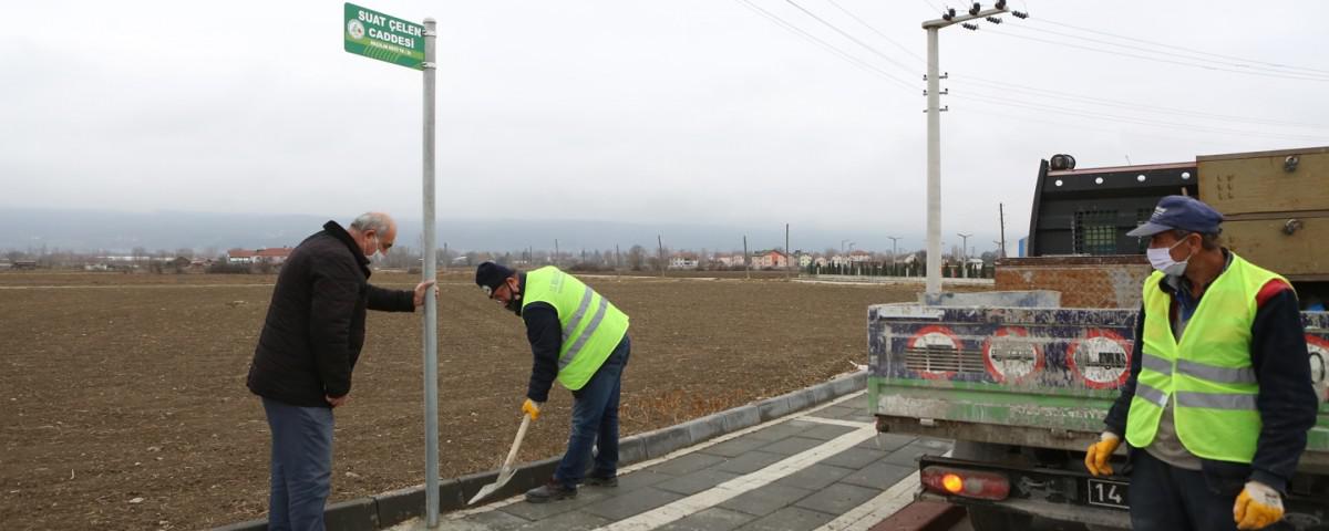 Bolu Belediyesi Destek Hizmetleri Müdürlüğü'ne bağlı ekipleri, bugün dünya şampiyonu, eski milli cimnastikçi Çelen'in adını yaşatacak caddenin iki ucuna “Suat Çelen Caddesi” tablasını dikti.