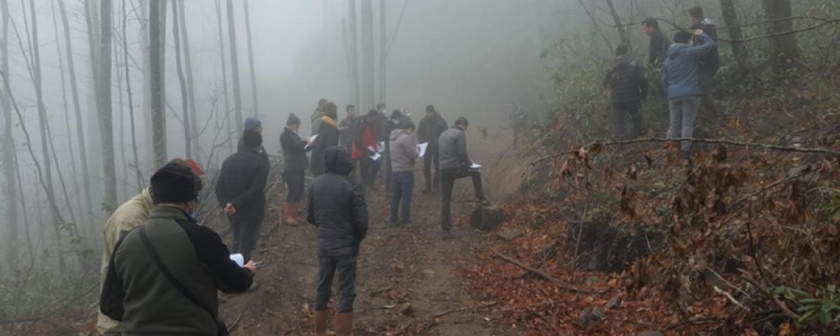 Daha sonra arazi üzerinde tatbikat safhasına geçildi, Tatbikatta, haritanın araziye uygun yönüne konması, harita üzerine işlenen yol güzergâhının araziye oturtulması, araziye aplike edilecek eğimin tespiti, ölçüm lata boyunun ayarlanması, klizimetre ile meyil okunması, yamaç meyili ve yamaç klaslarının tespiti ve tespitlerin etüt karnesine işlenmesi çalışmaları her bir teknik elemana tatbik ettirilerek yol etüt çalışması gerçekleştirildi.