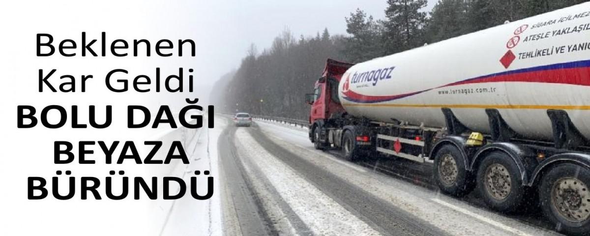 Türkiye'nin en önemli geçiş güzergahlarından Bolu Dağı'nda etkili olan kar yağışı sürücülere zor anlar yaşatıyor. Türkiye'nin en önemli geçiş güzergahlarından Bolu Dağı'nda sabah saatlerinde kar yağışı etkili oldu. Yoğun kar yağışı sebebiyle bazı araçlar yolda kaldı. Dağı tırmanamayan bir tır sürücüsü zor anlar yaşadı. Tır sürücüsünün yardımına trafik polisleri koştu. Yoğun kar yağışı devam ederken karayolları ekipleri yolu açmak için çalışmalarını sürdürüyor. Bolu ve Düzce Emniyet Müdürlüğü ekipleri ise sürücülere uyarılarda bulunuyor. -