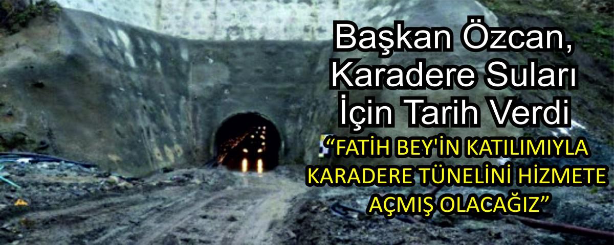 Karadere kaynak sularını içme suyu şebekesine aktararak şehrin şu ihtiyacını karşılayacak olan 3 bin 635 metrelik tünelin Bolu Belediyesi tarafından yapılan iç kaplama işleminde sona gelindi. Karadere tüneli hakkında açıklamada bulunan Bolu Belediye Başkanı Tanju Özcan, Tünelin Tarım ve Orman Bakan Yardımcısı Fatih Metin'inde katılımıyla 4 Ocak ile 10 Ocak arasında yapılması planlanan törenle açılacağını belirtti.