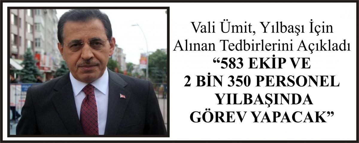 Bolu Valisi Ahmet Ümit, Yılbaşında görev başında bulunacak ekip sayılarını açıkladı. İl genelinde toplamda 583 ekip ve 2 Bin 350 personelin yılbaşı nedeniyle uygulanacak olan 4 günlük sokağa çıkma yasağı süresince görev başında olacağını belirten Vali Ümit, Yasakları ihlal edenlere mutlaka yasal işlem yapılacağını söyledi.