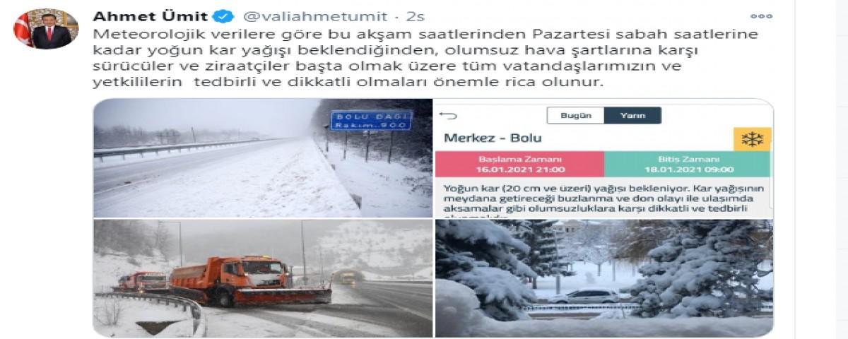 Karla mücadele çalışmaları kapsamında gerekli önlemleri aldıklarını vurgulayan Ümit, “Olumsuz hava şartlarına karşı sürücüler başta olmak üzere, tüm vatandaşlarımızın ve yetkililerin tedbirli ve dikkatli olmaları önemle rica olur” ifadelerini kullandı.