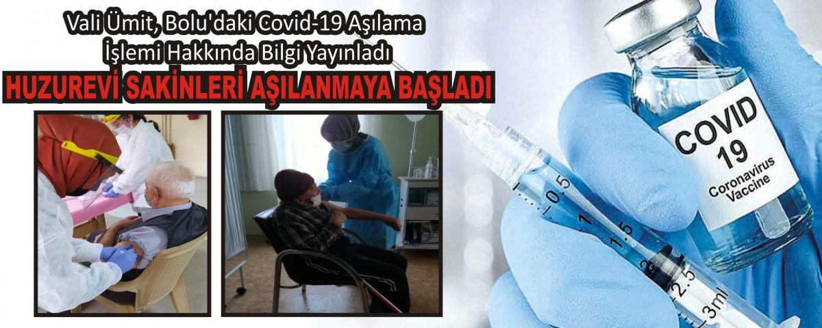 Bolu Valisi Ahmet Ümit'in paylaşımda bulunarak Covid-19 aşılama programı hakkımda yayınladığı bilgi şu şekilde; “Sağlık Bakanlığımızın belirlediği Covid-19 aşılama programı kapsamında 6500'e yakın sağlık personelimizin aşı işlemleri sürerken, huzurevlerimizdeki 115 yaşlımız, Resmi/Özel Reh. Merkezlerindeki 18 yaş üstü 55 engellimiz ve bu kurumlardaki 190 çalışanımızın aşılanmasına da başlandı”
