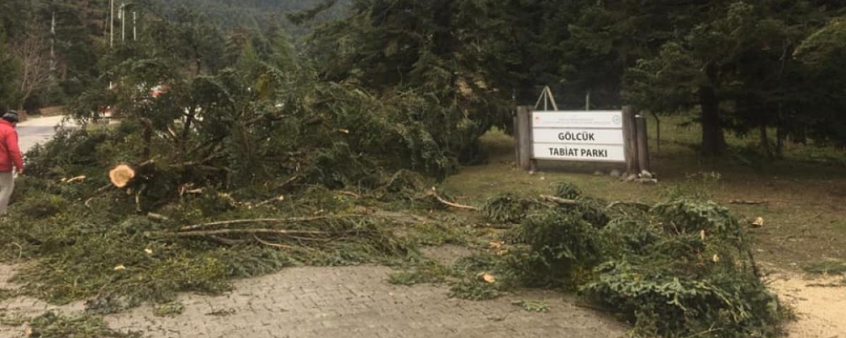 Bolu'da etkisini gösteren kuvvetli rüzgar Gölcük Tabiat Parkı içerisinde onlarca ağacı devirdi. Tabiat parkına giriş güvenlik gerekçesiyle kapatıldı.