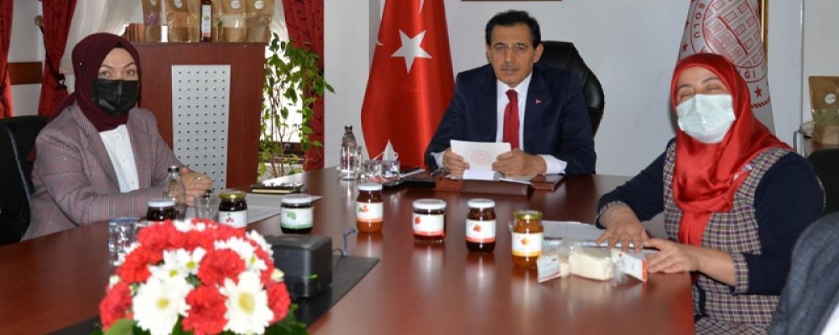 “Kadın Kooperatifleri Batı Karadeniz Buluşması”nda VKS yöntemiyle katılan Bolu Valisi Ahmet Ümit ile diğer illerin Valileri Kadın Kooperatifçiliğin geliştirilmesi için kendi illerinde yapılan çalışmaları aktarırken S.S. Demirciler Gelincik Kadın Tarımsal Kalkınma Kooperatifi Başkanı Emine Özdoğan ile diğer Kadın Kooperatif temsilcileri de kendi illerinde gerçekleştirdikleri örnek uygulamaları ve başarı hikâyelerini katılımcılarla paylaştılar.