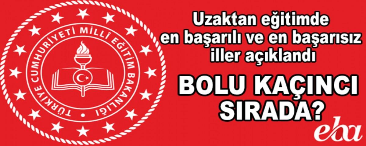 Bolu'da EBA erişimi olmayan öğrenci sayısı 2 bin 516 kişi olarak belirlendi. 40 adet EBA Destek Noktası bulunan Bolu'da 1 mobil EBA Destek Noktası bulunuyor. Bolu MEB tarafından oluşturulan listede ise yüzde 32,59'Luk başarı oranı ile kendisin 29'uncu sırada yer buldu.