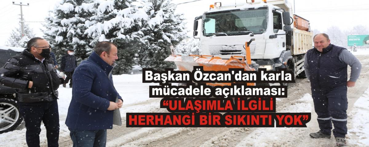 Şu an için ulaşımda herhangi bir sıkıntı yaşanmadığını da belirten Özcan, “Bolu'nun şu anda ulaşımla ilgili herhangi bir sıkıntısı yok. Hastanelere, kamu kurumlarına ulaşımda net bir sıkıntı yok. Sadece yayaların yürümesiyle ilgili bir sıkıntı var. Biz elimizden gelen gayreti gösteriyoruz. Özellikle 1-2 gün dediğim gibi vatandaşlarımız da biraz sabırlı olsun. Her şey güzel olacak.” ifadelerini kullandı.