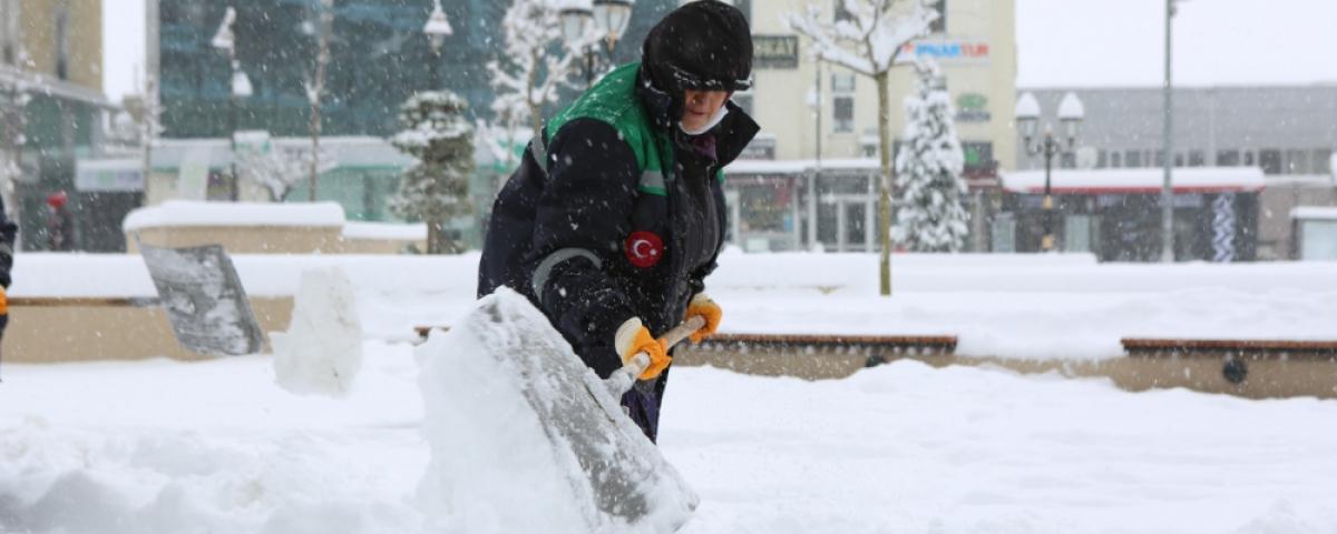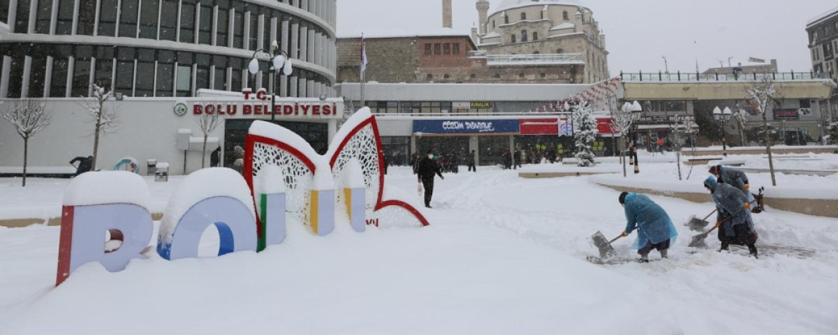 Karla kaplı caddeler, sokaklar ve meydanlar ise Bolu Belediyesi'nin fedakâr Temizlik İşleri Müdürlüğü personellerince kardan temizleniyor. Etkili olan kar yağışına ve dondurucu soğuğa rağmen belediye personelleri, kaldırımları beyaza bürüyen karları küreklerle temizliyor.