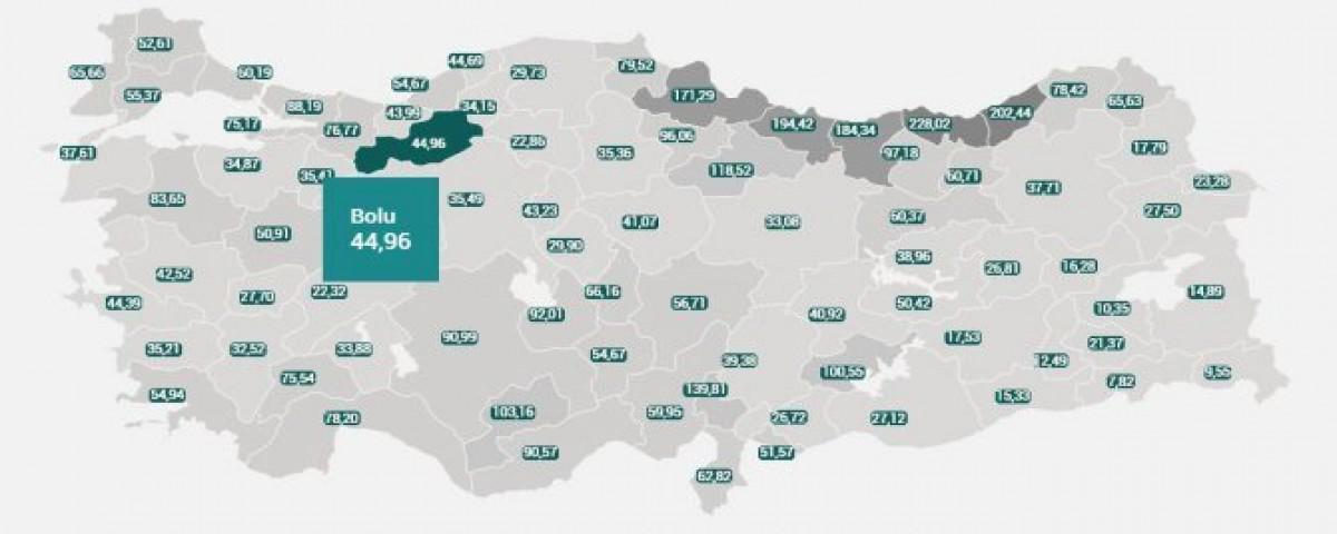 Sağlık Bakanı Fahrettin Koca, açıkladığı tabloya göre, Bolu'da 8-14 Şubat arasında Covid-19 vaka sayısı, her 100 bin kişide 44,96 oldu. Açıklanan tabloya göre Bolu'daki güncel Covid-19 rakamları haftalık olarak 135 kişi olarak belirlendi.