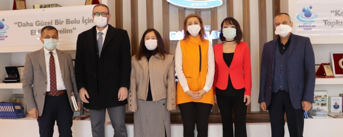 Bolu Abant İzzet Baysal Üniversitesi Rektör Yardımcısı Prof. Dr. Kamil Gürel, BAİBÜ Sağlık Bilimleri Fakülte Dekanı Prof. Dr. Arzu İlçe, BAİBÜ İletişim Fakültesi Halkla İlişkiler ve Tanıtım Bölüm Başkanı Prof. Dr. Himmet Karadal, BAİBÜ Proje Destek Ofisi Koordinatörü Doç. Dr. Arzu Öztürk, Bolu Bağışçılar Vakfı'nda BBV Başkanı Nahit Abak ve Genel Sekreter Öznur Akkaya ile vakıf binasında bir araya geldi.