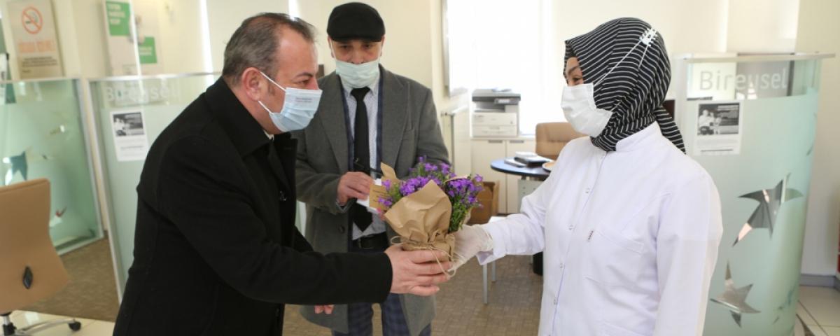 Bolu Belediye Başkanı Tanju Özcan, 8 Mart Dünya Kadınlar Günü dolayısıyla İzzet Baysal Caddesi'nde bir dizi ziyaret gerçekleştirdi. Ziyaretlerde cadde üzerindeki iş yerlerini dolaşan Bolu Belediye Başkanı Tanju Özcan, dünyadaki en kıymetli varlığın “kadın” olduğunu belirterek, çiçek ve çeşitli hediyeler armağan ettiği kadınların 8 Mart Dünya Kadınlar Günü'nü kutladı. Çiçek ve hediye jesti ile mutlu olan kadınlar da Başkan Özcan'a bu özel günde kendilerini hatırladığı için teşekkür ettiler.