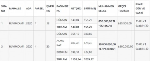 Bolu Belediyesi tarafından geçtiğimiz aylarda kat karşılığı olarak ihaleye çıkan ve yapım ihalesini Bolu Bel A.Ş.'nin aldığı Bolu Belediyesi yeni iş merkezinde 2 adet iş yeri satışa çıkarılıyor. Bolu Bel A.Ş.'ye ait olan 151 m2 ve 1235 m2 büyüklüğündeki iki iş yeri için 15 Mart 2021 Pazartesi günü Saat: 14.30'da Bolu Belediyesi Meclis salonunda açık artırma usulü ile ihale gerçekleştirilecek.