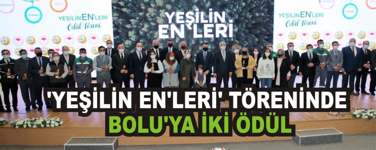 Orman Genel Müdürlüğü tarafından ilk kez 2019 yılında gerçekleştirilen ve bu yıl 3üncüsü düzenlen ‘Yeşilin EN'leri Ödül Töreni' 11 Mart 2021 tarihinde Orman Genel Müdürlüğü Konferans Salonu'nda gerçekleştirildi. 2020 yılında ülkemiz ormancılığında üstün hizmet gösteren kişi ve kuruluşlara başarılarından ve ormancılığa katkılarından dolayı Tarım Ve Orman Bakanı Dr. Bekir Pakdemirli tarafından ödülleri takdim edildi. Törende, Bolu Orman Bölge Müdürlüğü iki dalda ödüle layık görüldü. Göynük Orman İşletme Müdürlüğüne bağlı Tekirler Orman İşletme Şefi Ünal Kahveci en Fazla Doğal gençleştirme yapan İşletme Şefi ve Aladağ Orman İşletme Müdürlüğü Sarıalan Orman İşletme Şefliğinde görevli İsa Muslu en Çalışkan Orman Muhafaza memuru kategorilerinde ödül aldı. Bölge Müdürü Şaban Bıyıklı ödül alan personeli tebrik ederek başarılarının devamını diledi.