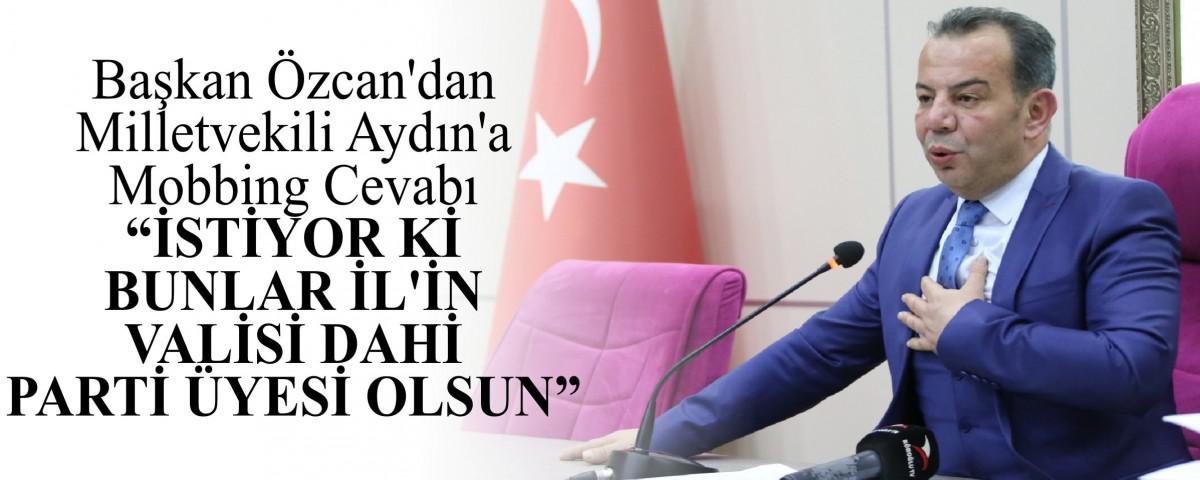 Bolu Belediye Başkanı Tanju Özcan, Ocak ayında belediye personeli ile yaptığı toplantıda, belediyede memur statüsünde olup vatandaş ile doğrudan muhatap olan çalışanların herhangi bir siyasi partinin üyesi olmamaları konusunda uyarıda bulunmuştu. Başkan Özcan'ın söylemlerin üzerine açıklamalarda bulunan AK Parti Bolu Milletvekili Arzu Aydın'ın, ‘Bolu Belediye Başkanı Tanju Özcan tarafından belediye personeline mobbing uygulanıyor. Yaptığı suçtur, savcılığı göreve davet ediyorum' ifadelerini kullandı.