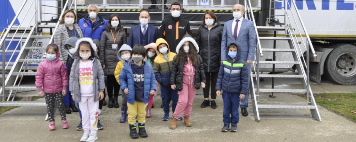 Gezici Deprem Simülasyon Eğitim tırı İl Milli Eğitim Müdürlüğü ve AFAD Bolu İl Müdürlüğü arasında yapılan protokol kapsamında öğrencilere farkındalık eğitimleri veriyor. 2021'in Afat Eğitim Yılı ilan edilmesinin ardından yapılan planlama çerçevesinde farkındalık eğitimleri sürdürülecek. Öğrenciler yapılan bilgilendirmenin ardından Deprem tırına binerek deprem simülasyonu ile deprem anını yaşayarak deprem anında yapılması gerekenleri uygulamalı olarak öğrendiler. Bu çalışmaları İl Milli Eğitim Müdürü Cemil Sarıcı AFAD İl Müdürü Cengiz Çavuş ile ziyaret etti.
