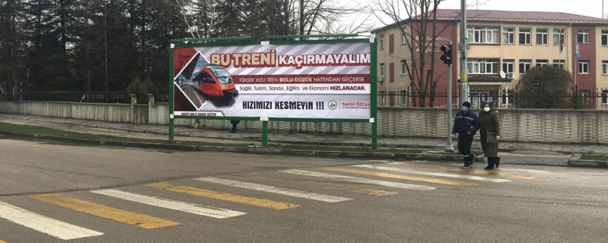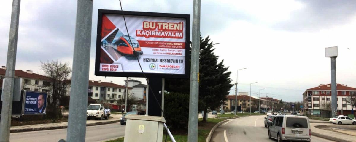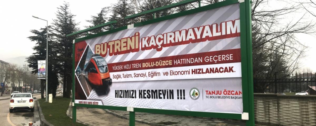 Bolulu ve Düzceli yöneticilerin birlikte hareket etmesi halinde birlikten güç doğacağını ve hızlı tren güzergâhının Bolu-Düzce hattı şeklinde yeniden revize edeceğini düşünen Bolu Belediye Başkanı Tanju Özcan, “Bu Treni Kaçırmayalım!” sloganıyla yeni bir kampanya başlatarak, iki şehrin farklı noktalarına astırdığı afişlerle dayanışma çağrısı yaptı. Billboardlara eş zamanlı asılan afişlerde Bolu Belediye Başkanı Tanju Özcan, Yüksek Hızlı Tren (YHT) hattının Düzce-Bolu güzergâhından geçmesi durumunda iki komşu ilde turizm, sağlık, sanayi, eğitim ve ekonominin hızlanacağını vurgulayarak, hızlarının kesilmemesini istedi.