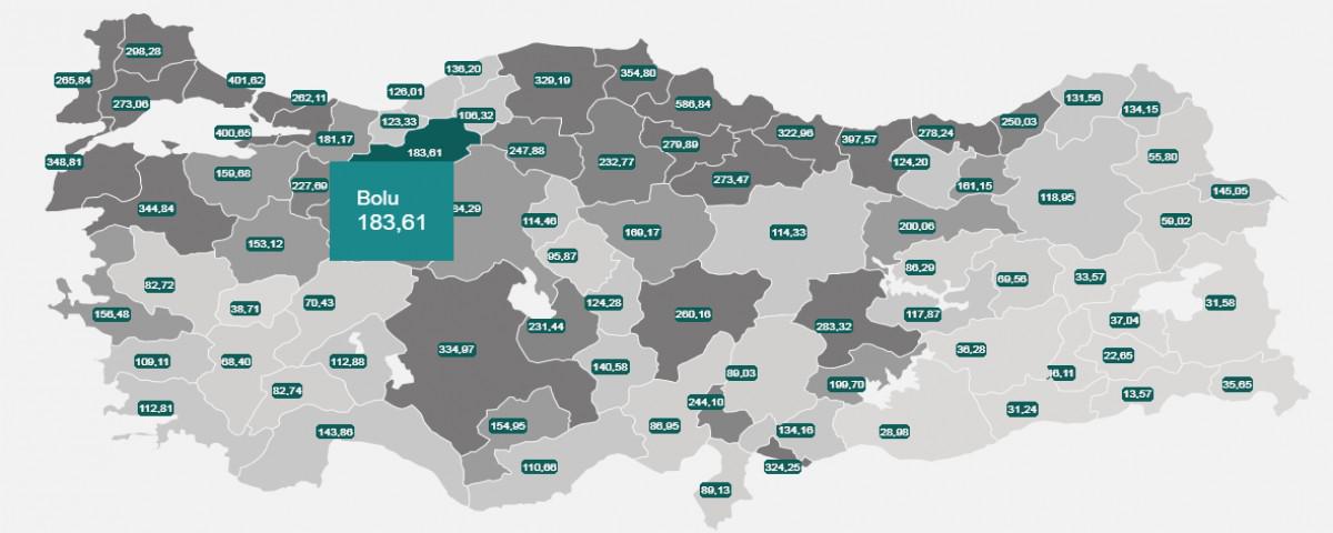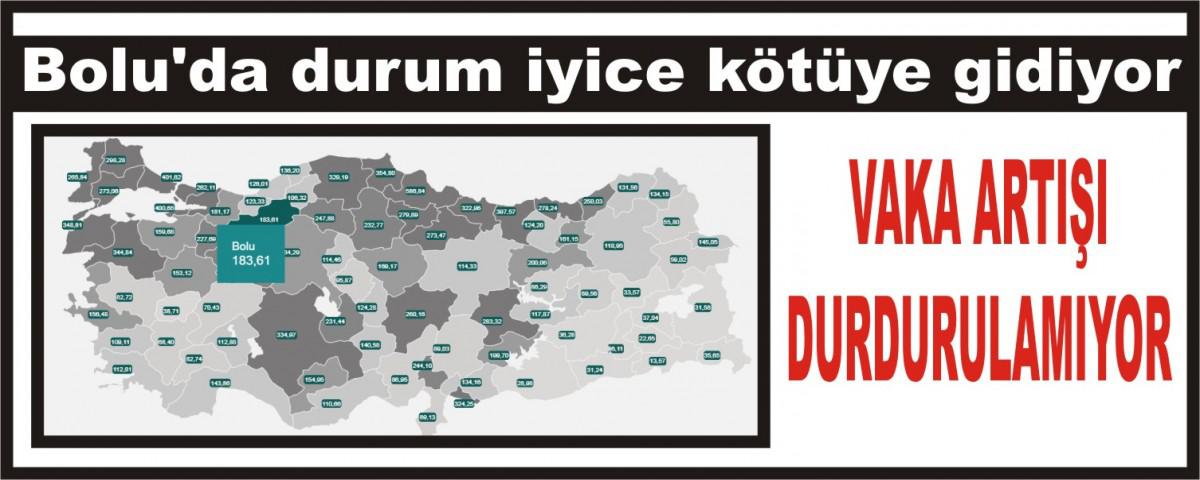 Geçtiğimiz hafta açıklanan verilere göre Bolu'da görülen korkunç artış devam ediyor. 13- 19 Mart arasında her 100 bin kişide 100,38 olan vaka sayısı 20-26 Mart arasında 183,61 oldu.