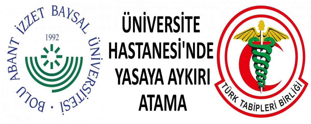 Açıklamada, Bolu Abant İzzet Baysal Üniversitesi Bolu İzzet Baysal Fizik Tedavi ve Rehabilitasyon Eğitim ve Araştırma Hastanesi başhekimliğine yapılan atamanın doktor öğretim üyesi olmasının yasaya aykırılık içerdiği belirtildi. Uzun süredir liyakat ve başarı üzerinden bir yönetici ataması yapılmadığına dikkat çekilen açıklamada, “Siyasi kadroların kendi görüşlerine uygun kişileri devlet yapısının her alanına yerleştirerek kadrolaşma çabaları sürmektedir” denildi.