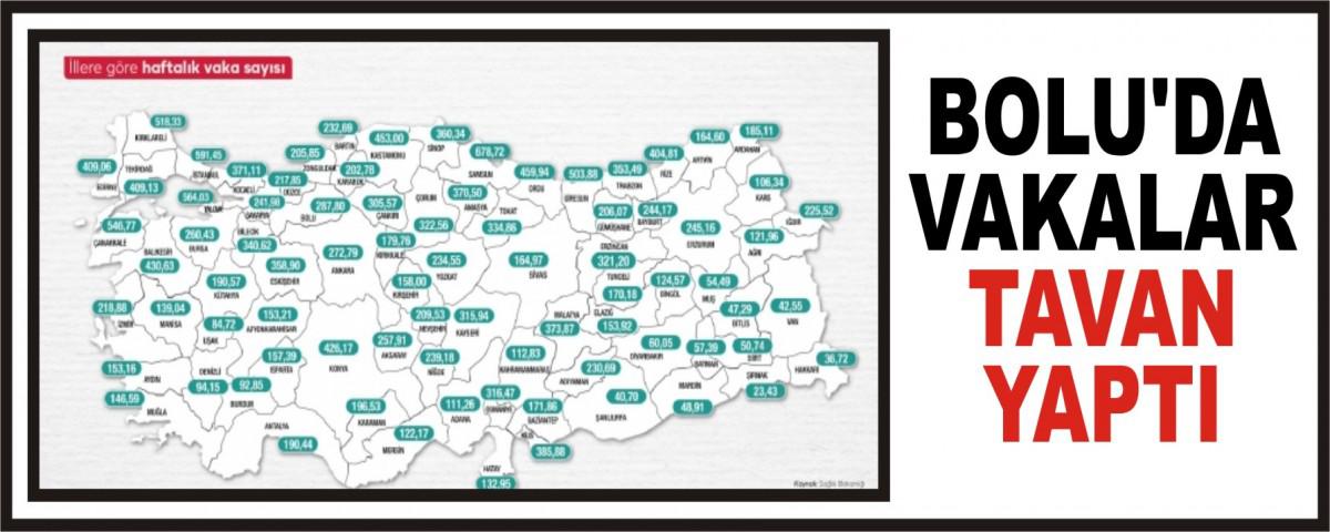 Geçtiğimiz hafta açıklanan verilere göre Bolu'da görülen korkunç artış hızla devam ediyor. Bolu'da 20-26 Mart arasında her 100 bin kişide 183,61 olan vaka sayısı27 Mart-2 Nisan arasında 287,80 oldu.