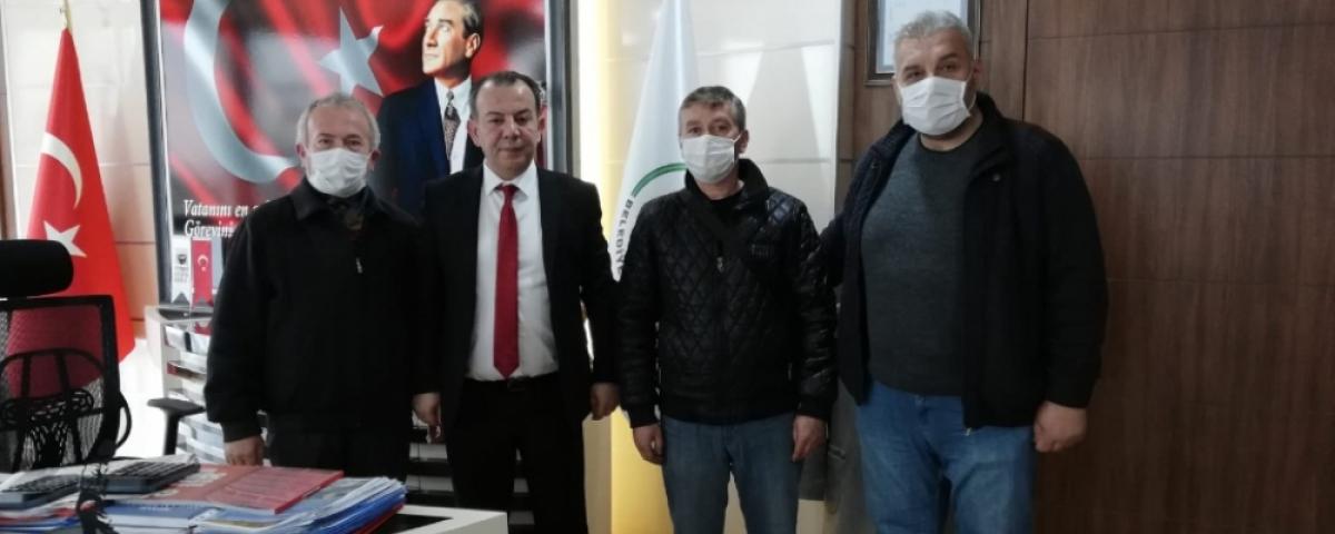Bolu'da Sanayi Sitesi'nde geçtiğimiz günlerde bir otomobilin LPG tankı takıldığı sırada patlamasıyla işyeri ile içerisinde bulunan araç küle döndü. Yaşanan büyük maddi hasarın ardından Belediye Başkanı Tanju Özcan olay yerine giderek incelemelerde bulundu. Olayın ardından Sanayi Sitesi Dernek Başkanı Erol Aslan ile İşyeri sahibi Ayhan Karakaş Başkan Özcan'ı makamında ziyaret etti. Özcan, yaşanan talihsiz olayla ilgili açıklamada bulundu.