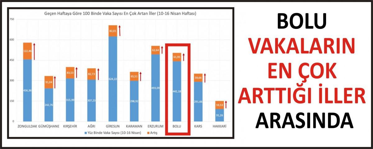 Sağlık Bakanı Fahrettin Koca'nın açıklaması şu şekilde: "Geçen haftaya göre 100 bin nüfusa karşılık gelen haftalık vaka sayısı en çok artan illerimiz; Zonguldak, Gümüşhane, Kırşehir, Ağrı ve Giresun. En çok azalan illerimiz ise, Yalova, Kastamonu, Çanakkale, Samsun ve Yozgat."