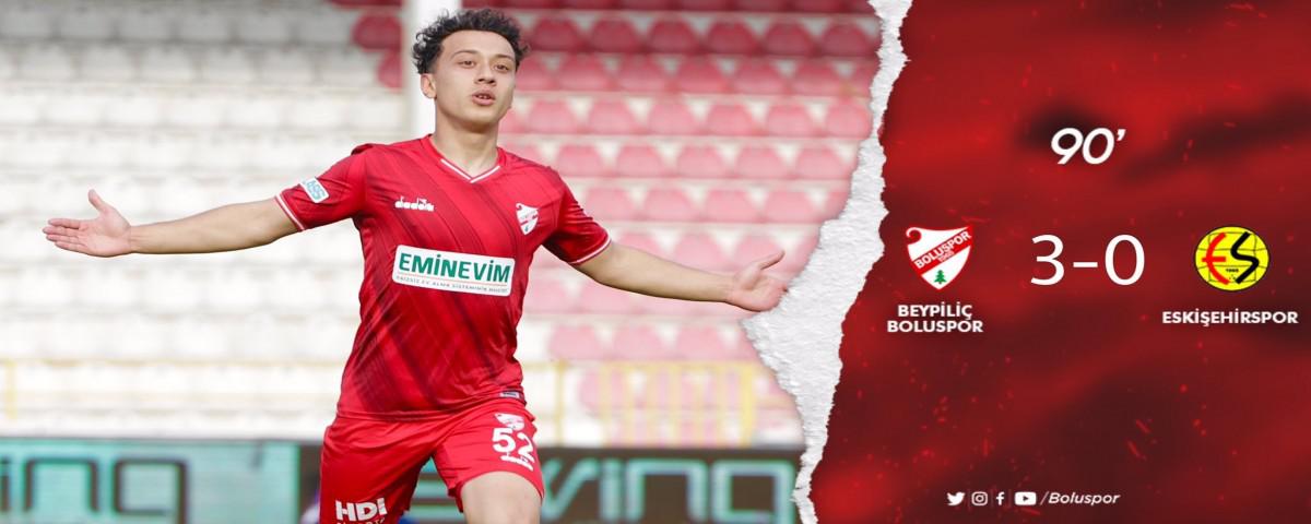 Karşılaşmanın sonuna 2 dakika süre ilave edildi. Maçta kalan dakikalarda başka gol olmayınca, Beypiliç Boluspor, sahasında Eskişehirspor'u 3-0 mağlup etti.