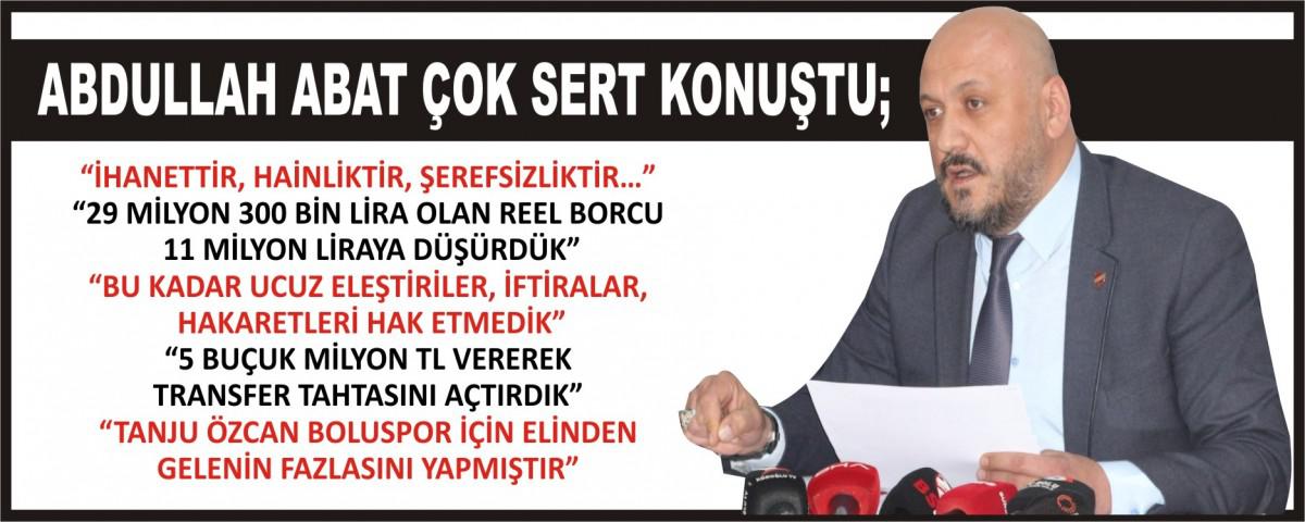 Boluspor Başkanı Abdullah Abat, basın mensupları ile kulüp binasında bir araya gelerek açıklamalarda bulundu. Açıklamalarında sezonu değerlendiren ve eski yönetime yüklenen Başkan Abat, kendi isteği ile başkanlık görevine gelmediğini belirtti. Boluspor'u maddi anlamda ve sportif anlamda daha iyi yerlere getirebileceğini düşünen varsa kongre kararı alarak Başkanlığı bırakabileceğini belirten Başkan Abat, “Geçen yıl enkaz edebiyatı yapmamak için konuşmadım. Çünkü bu geminin su almadan hassas bir şekilde güvenli bir limana yanaşması gerekiyordu. Burada hepimiz kaybederiz. Boluspor düşerse Bolu düşer. Bizler düşeriz, esnafımız düşer. Tabi ki gönül bir üst Lig'de oynamak ister. Eğer çıkarsak Bolu çıkar bunu da biliyoruz. Ama sihirli bir değnek elimizde yok” dedi.