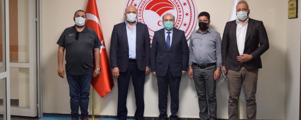 Boluspor Başkanı Abdullah Abat ve Tarım ve Orman Bakan Yardımcısı Fatih Metin ziyaret sonrasında hatıra fotoğrafı çekildiler.