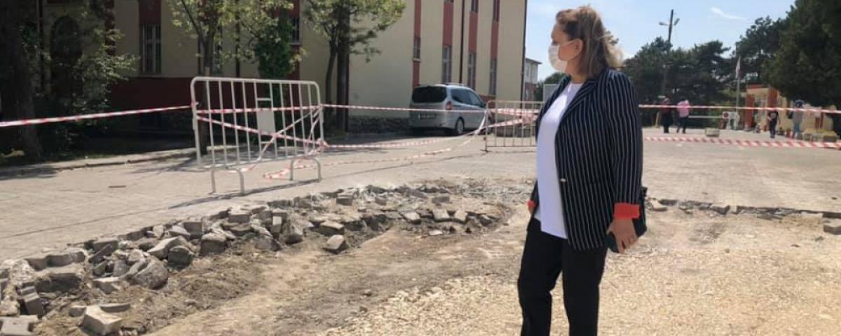 AK Parti Bolu Milletvekili Arzu Aydın, Bolu Belediyesi tarafından Kadın Doğum ve Çocuk Hastanesinin bulunduğu yerde yürüttüğü yol çalışmasını yerinde inceleyerek yapılan çalışmada tedbir alınmadığını ve çalışma alanına şeritlerin hastane tarafından çekilerek önlem alındığını belirtti.