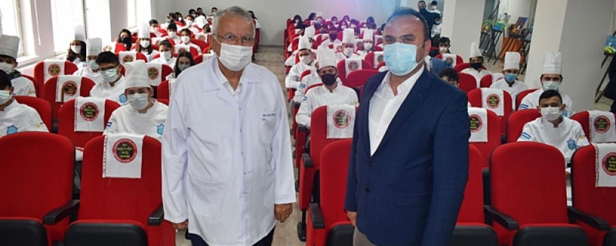 “Aşçı Kıyafeti Giyme Töreni” ve konferans ardından “Staj Öncesi Bilgilendirme Görsel Sanatlar Sergisi” gezildi.