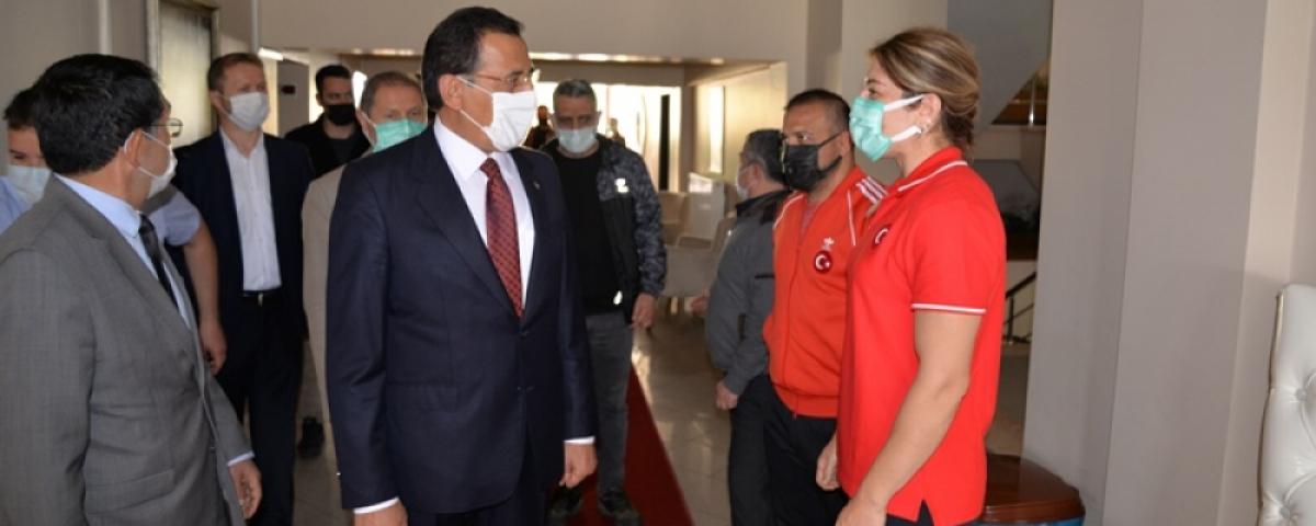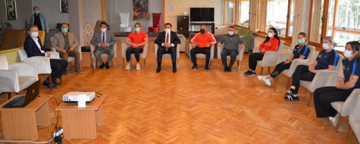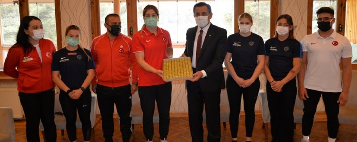 Vali Ahmet Ümit'in Bayan Güreş Milli Takımının Aladağ Kamp Eğitim Merkezindeki ziyaretinde Gençlik ve Spor İl Müdürü Şerafettin Çilkara da hazır bulundu. Aynı zamanda Dünya ve Avrupa Şampiyonu olan milli güreşçilerimize çiçek takdim eden Vali Ümit, çalışmalar hakkında Efrahim Kahraman'dan bilgiler aldı, kampta bulunan sporculara baklava ikram etti. Başarılı sporcularla ve antrenörleri ile sohbet eden Vali Ümit, güreşçilere 2020 Tokyo Olimpiyatlarında başarılar dileyerek, altın madalya ile dönmelerini temenni etti.